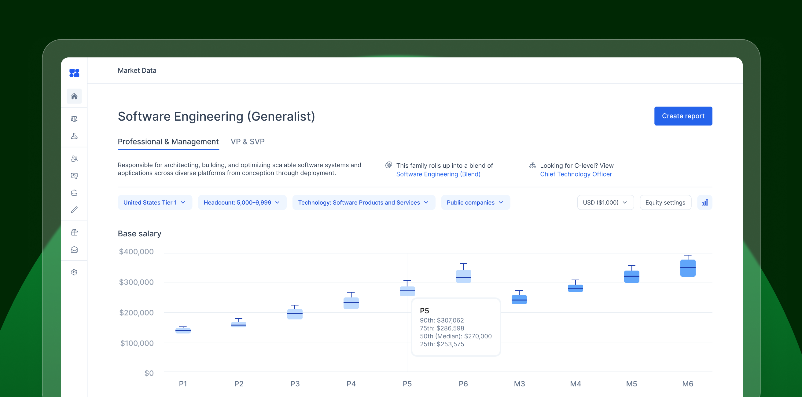 Access real-time compensation benchmarks from more than 8,600 companies, powered by AI-assisted job matching and predictive machine learning, to set pay with confidence.