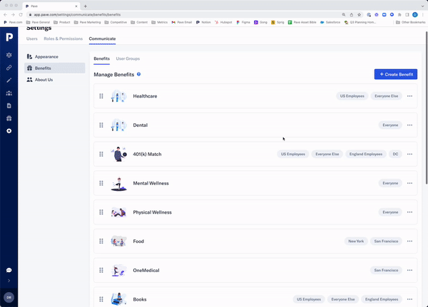 Pave admins also now have the ability to configure and update their employee-facing benefits pages as changes occur. Benefits can be easily configured for individual employee groups – for example New York or San Francisco employees – so that the portal is relevant and personalized for each individual.